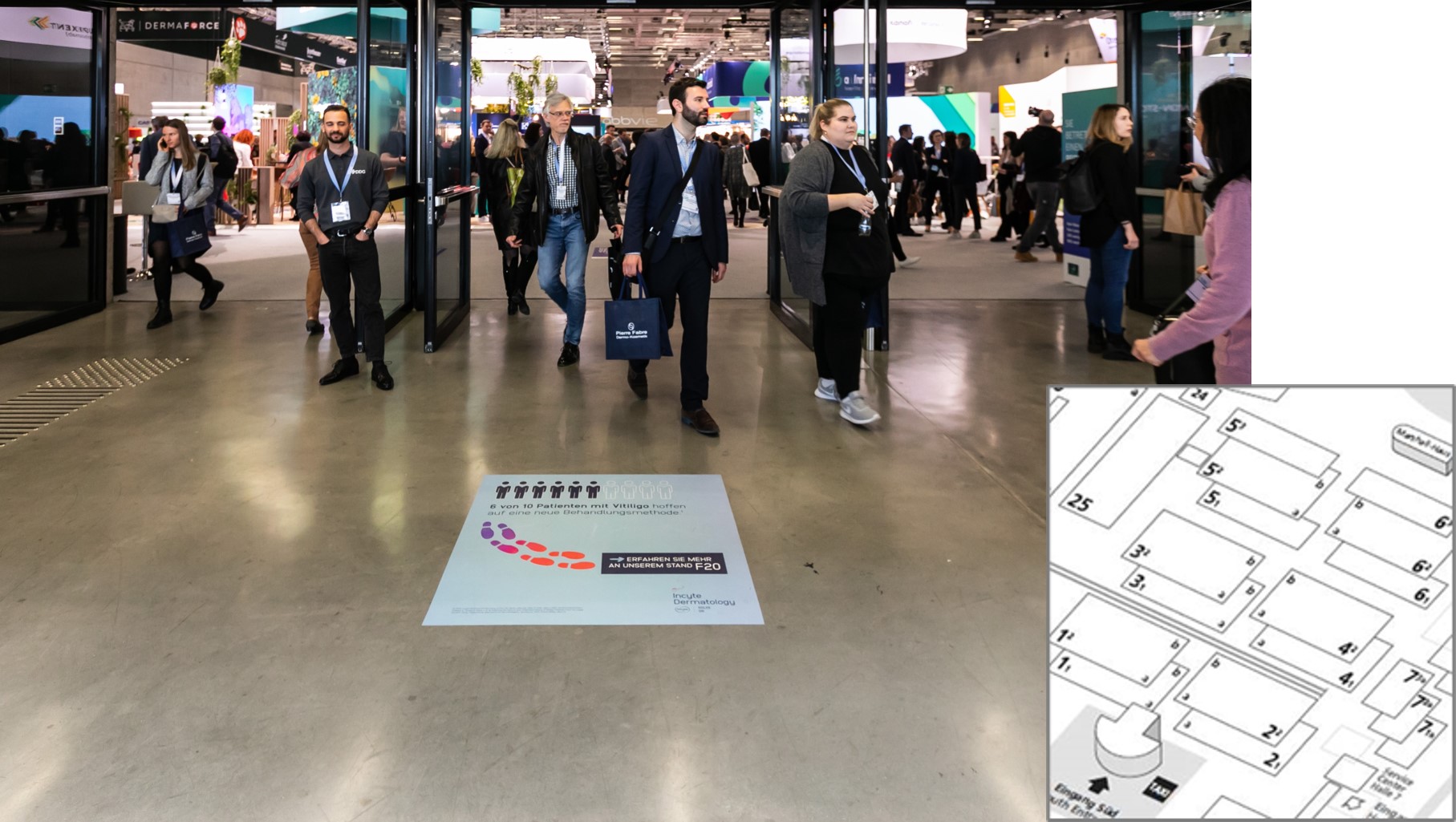 Floor Graphic: Die Maße des Floor Graphic betragen 1x1 Meter. Position Innenplätze nach Absprache z.B. in den Foyers und Eingangsbereichen.