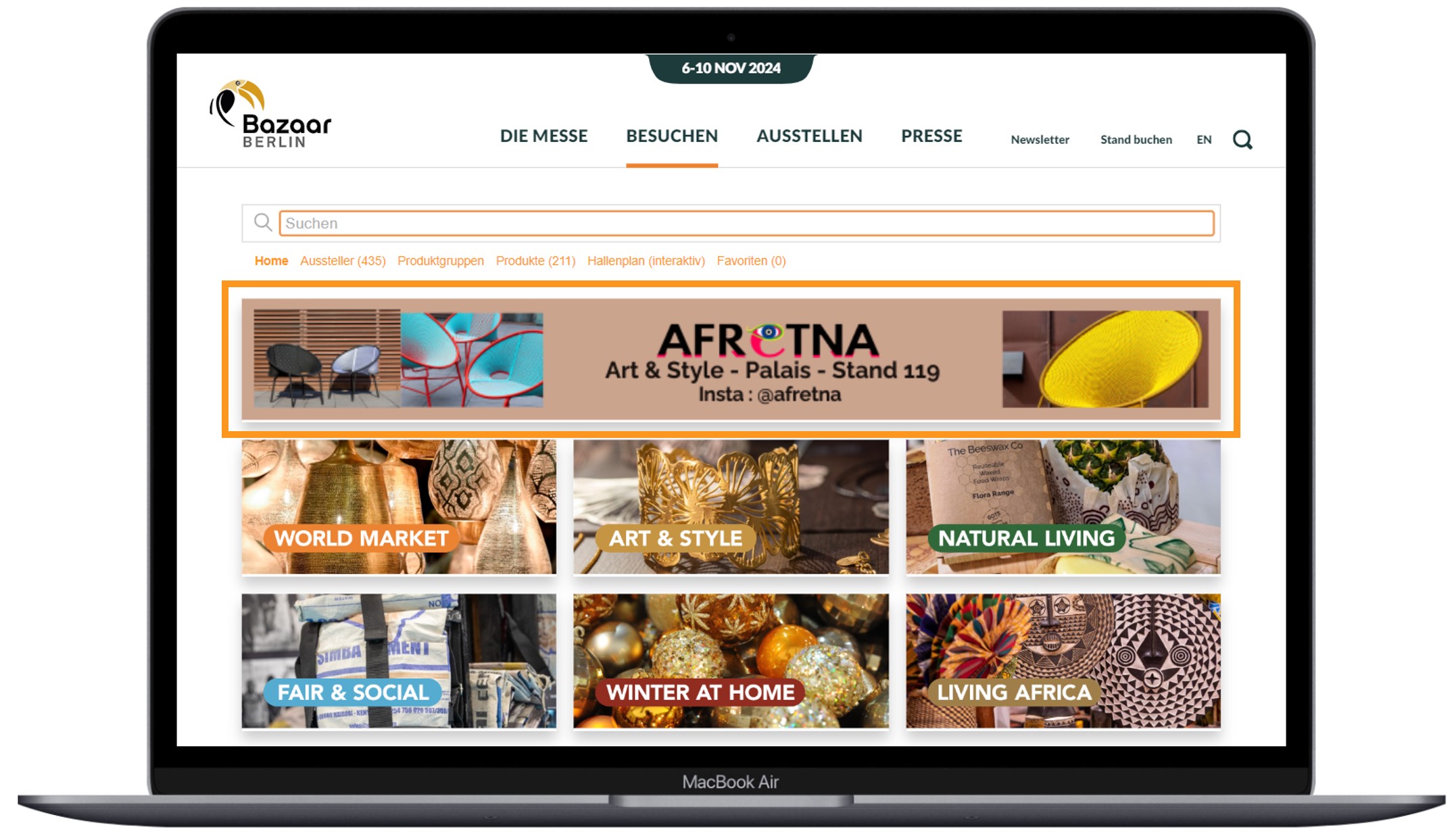 Das Banner wird an oberster Position Ausstellerverzeichnis dargestellt.