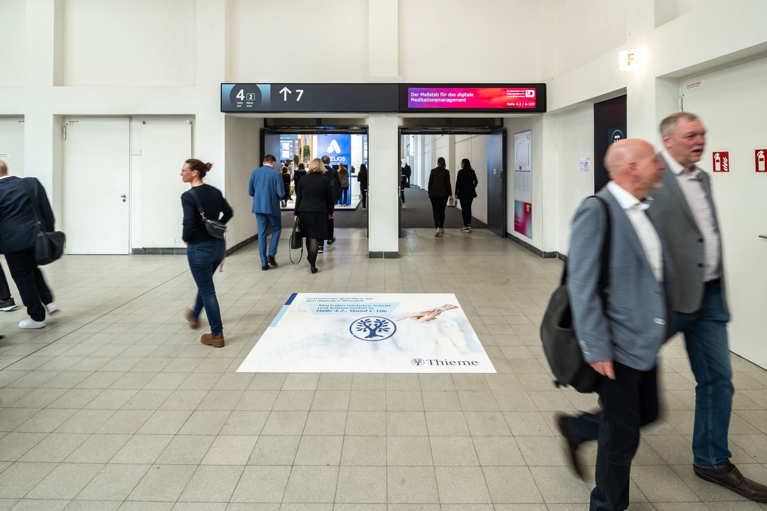 Onsite: 1x Floor Graphic on the exhibition grounds: advertising in the area of your own hall to bring visitors directly to your stand