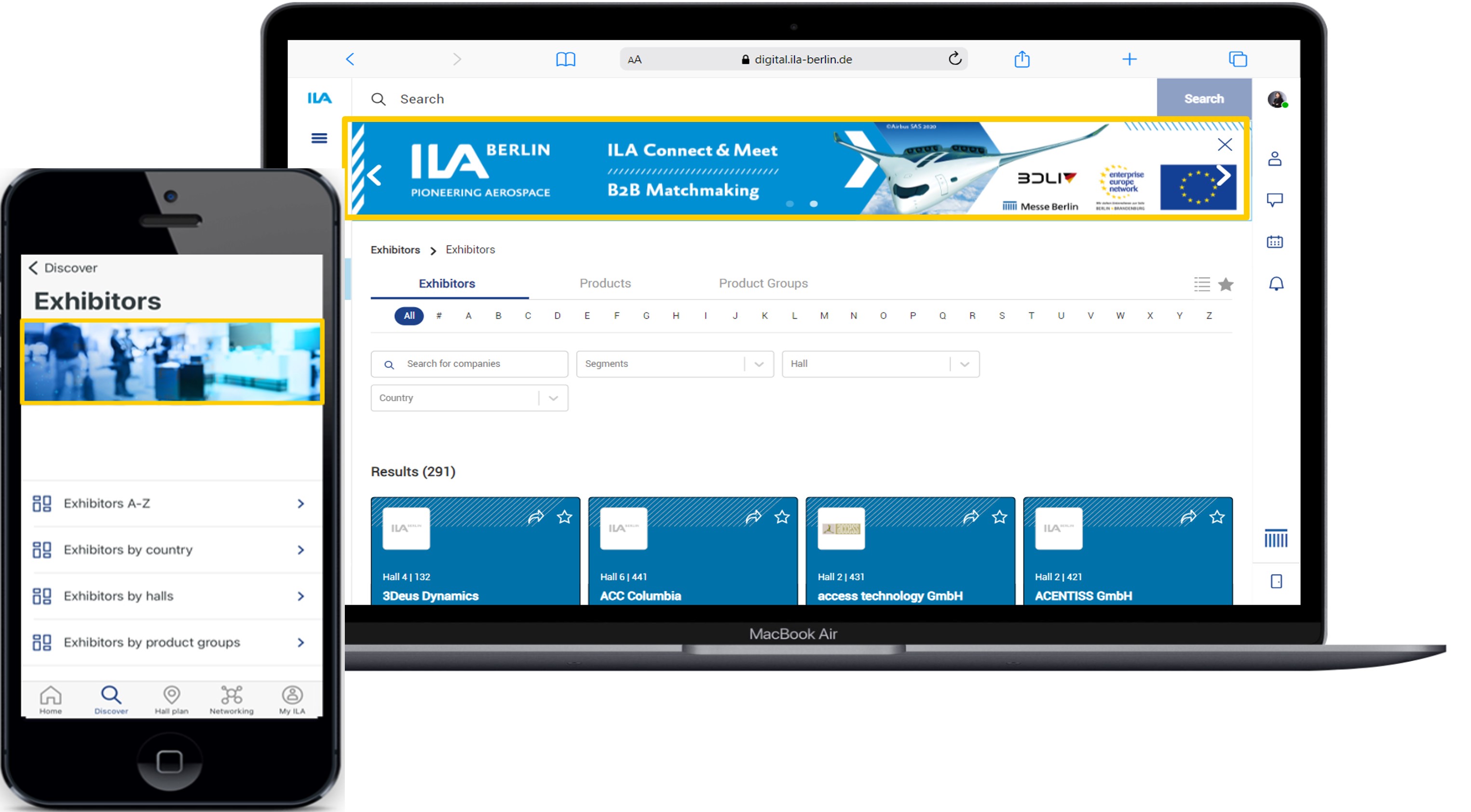 - 1x Sandwich Banner on the ILA Website: The sandwich banner will be included in one of the results lists and published in the list of exhibitors on the website Exhibitors