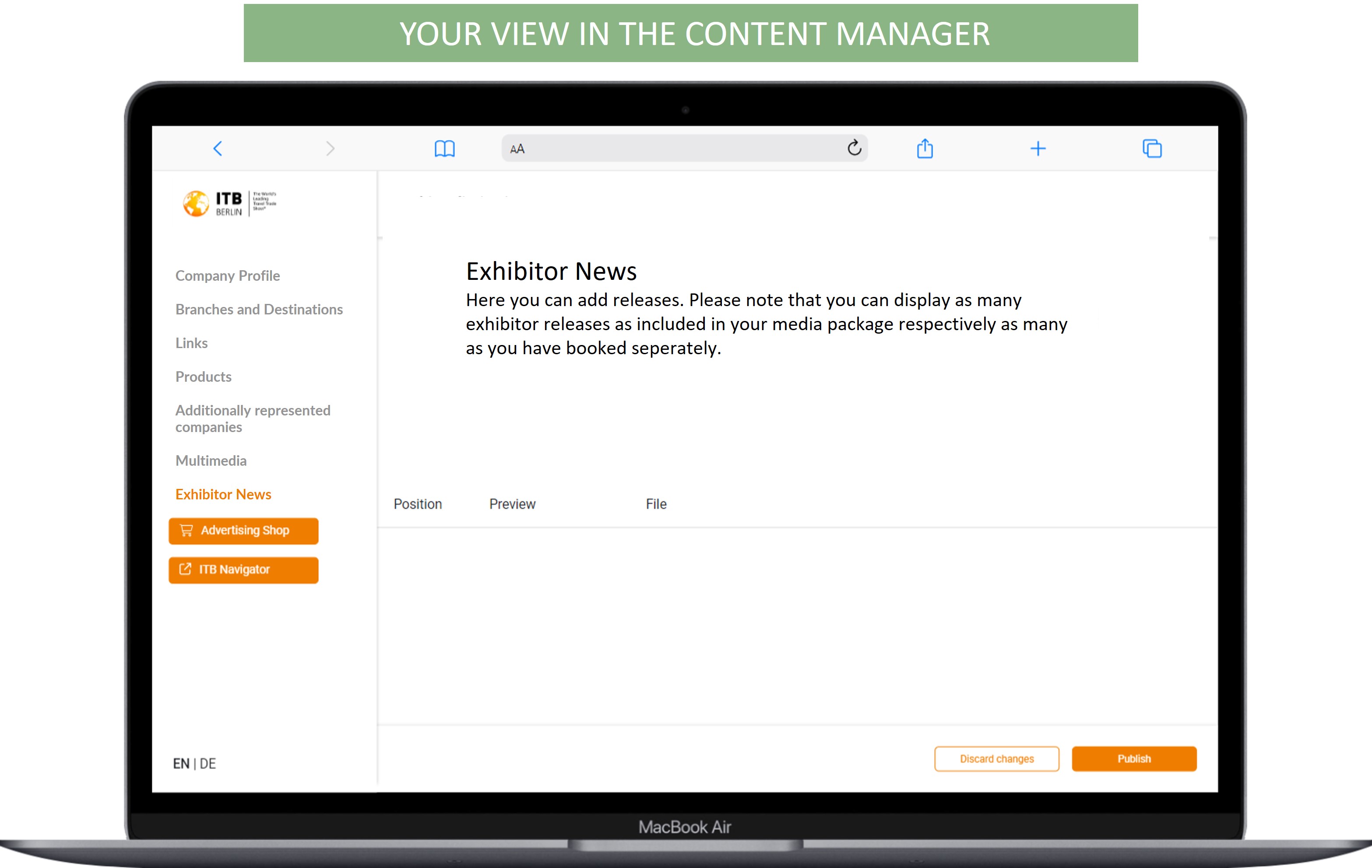 - Easy Content Management: After booking the Exhibitor News, the content manager is activated, allowing you to enter and edit your content at any time. Once saved, your posts are immediately public and visible.