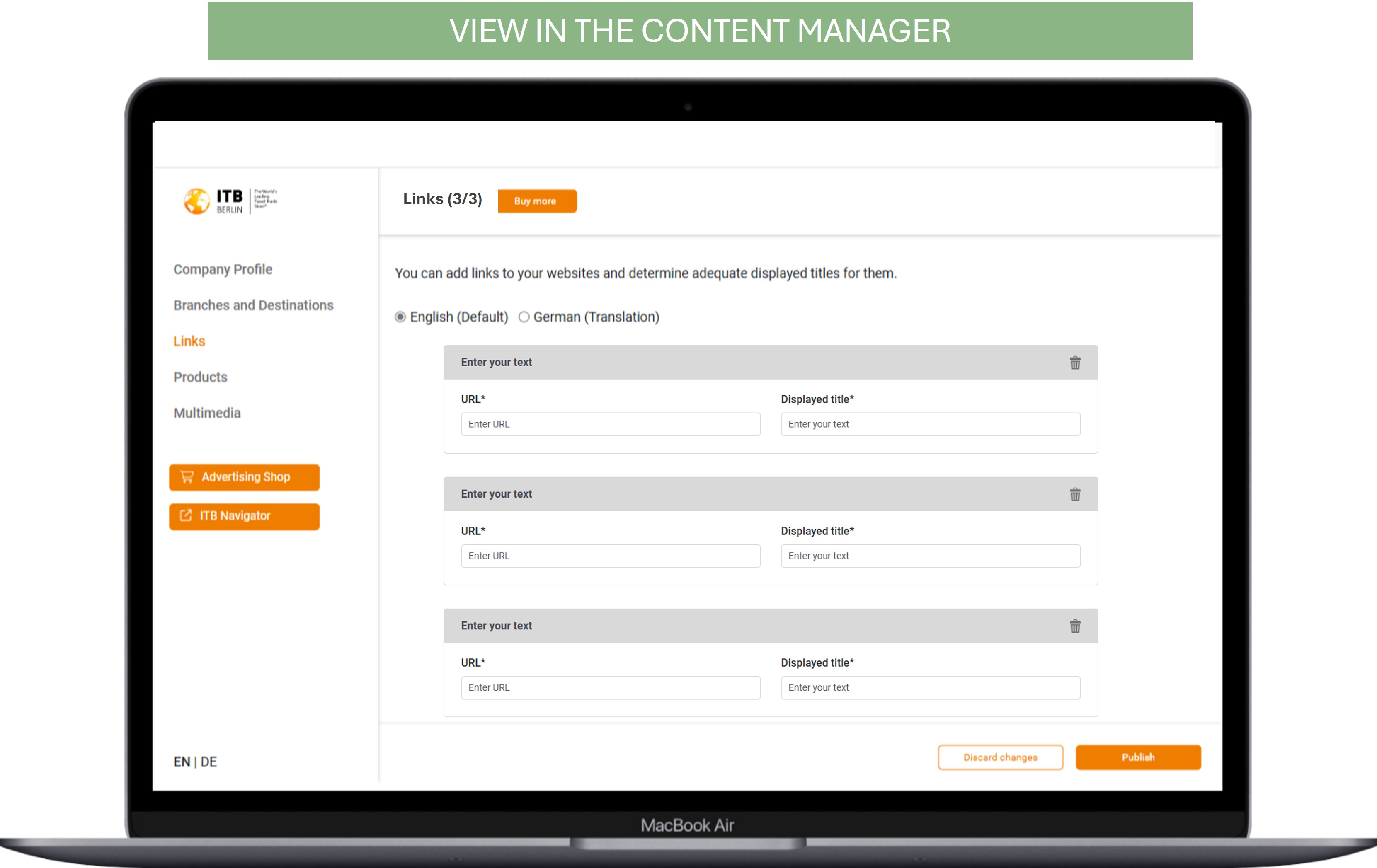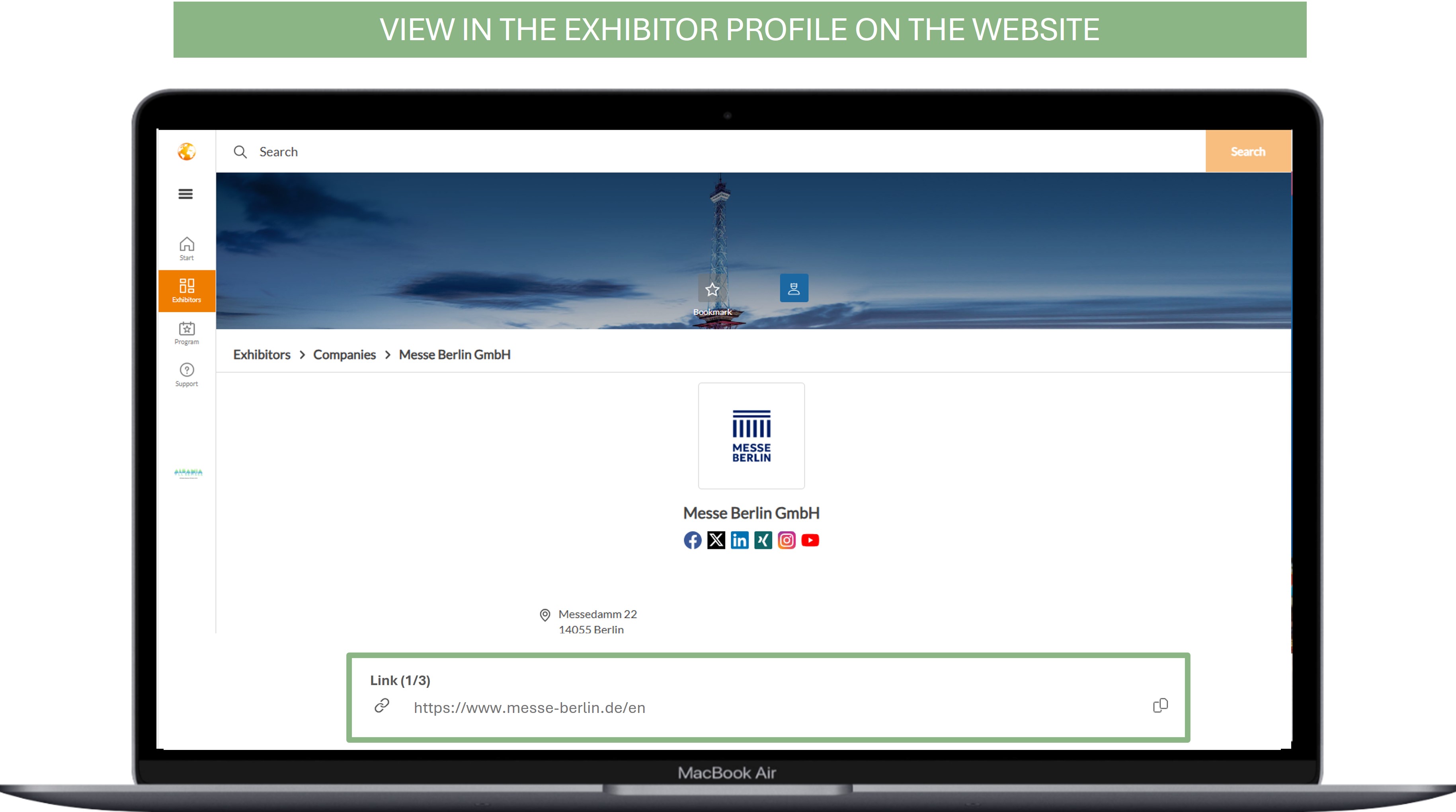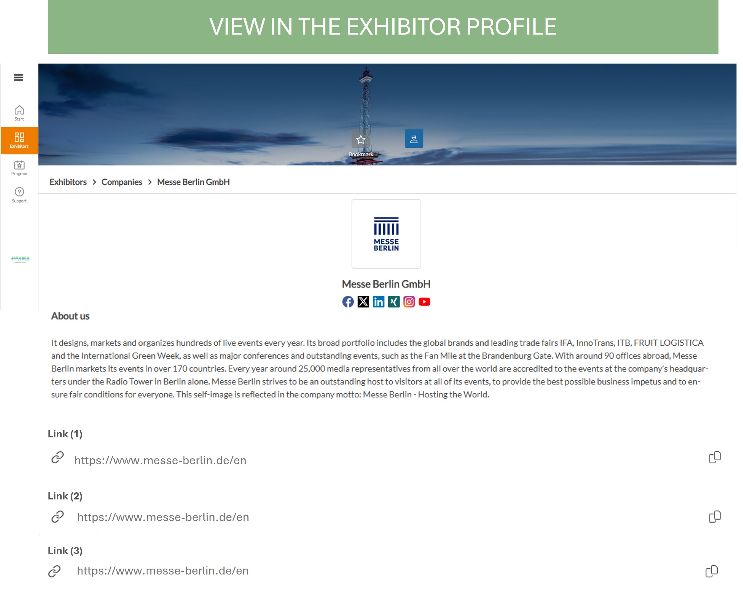 The additional links are displayed in the exhibitor profile on the ITB Navigator and in the app.